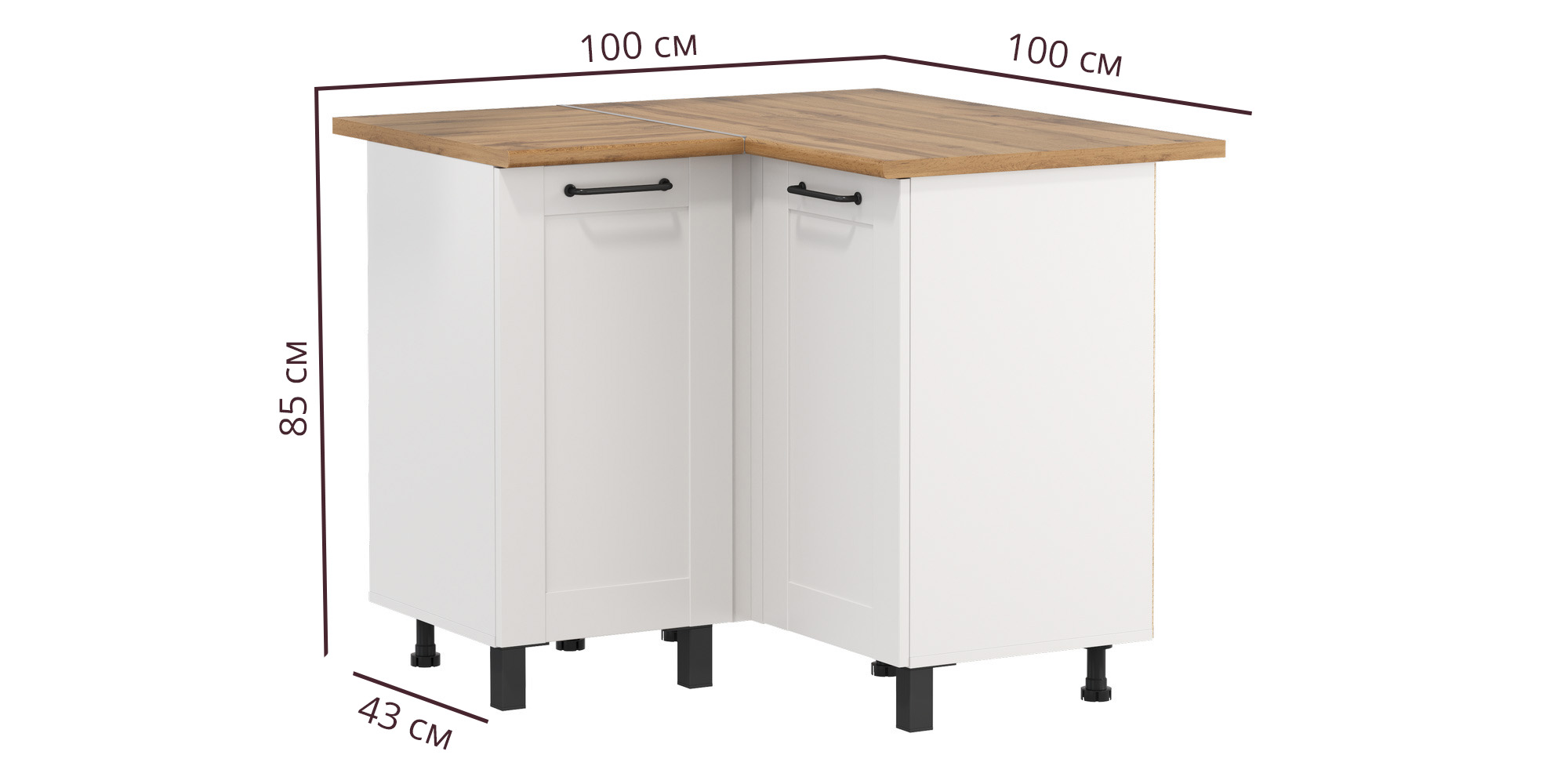 Шкаф угловой Аризона (белый / столешница: дуб вотан / ДВПО: белый / ПВХ софт белый 0,3мм / профиль: ПВХ белый О) исполняется в классическом стиле и спокойных цветах. Модель сочетает в себе простоту и функциональность, но при этом не выглядит громоздко. Она гармонично впишется в пространство, не утяжеляя его.